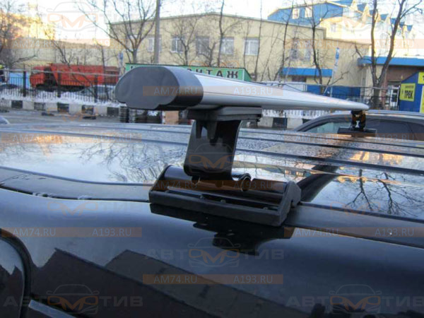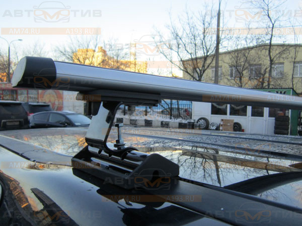 Багажник Inter C-15 Аэро 120 (артикул 5519+1005) в штатные места. Данный автобагажник Интер С-15 состоит из комплекта стоек (4 шт) и 2-х алюминиевых поперечин Аэро из овального профиля длиной 120 см.