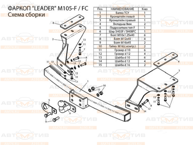 Фланцевый фаркоп Лидер Плюс (Leader-Plus M105-F) для Citroen C-Crosser 2007-2012, Mitsubishi Outlander XL 2007-2012 предназначен для буксировки прицепа максимальной массой 2000 кг с вертикальной нагрузкой на шар до 100 кг. Фаркоп поставляется без эле