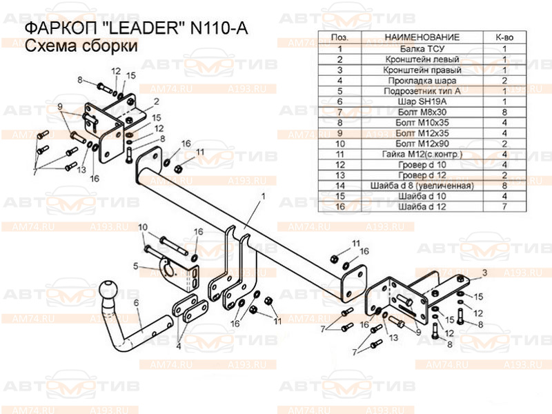 Условно-съёмный фаркоп Лидер Плюс (Leader-Plus N110-A) для Nissan Almera Classic B10 2006-2012 предназначен для буксировки прицепа максимальной массой 1000 кг с вертикальной нагрузкой на шар до 75 кг. Фаркоп поставляется без электрики. Установка фарк