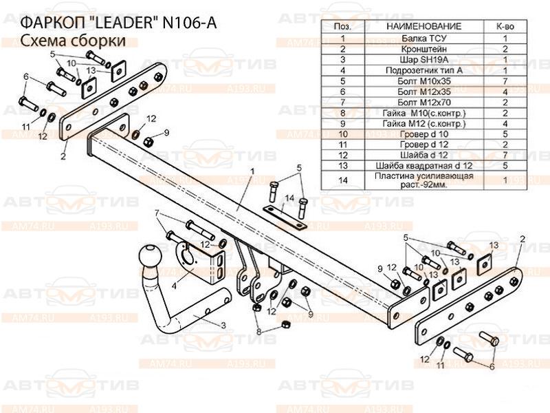 Условно-съёмный фаркоп Лидер Плюс (Leader-Plus N106-A) для Nissan Almera N16 седан 2000-2006 предназначен для буксировки прицепа максимальной массой 1300 кг с вертикальной нагрузкой на шар до 75 кг. Фаркоп поставляется без электрики. Установка фаркоп