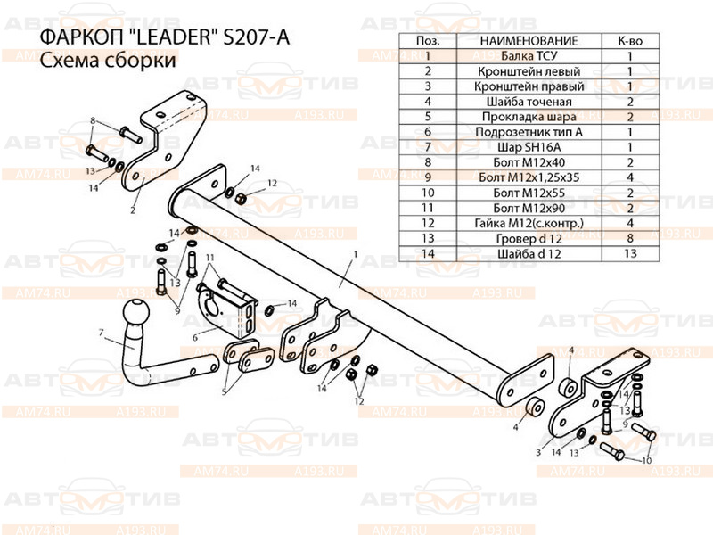 Условно-съёмный фаркоп Лидер Плюс (Leader-Plus S207-A) для SsangYong Actyon II 2010-2019 предназначен для буксировки прицепа максимальной массой 1500 кг с вертикальной нагрузкой на шар до 75 кг. Фаркоп поставляется без электрики. Установка фаркопа Le